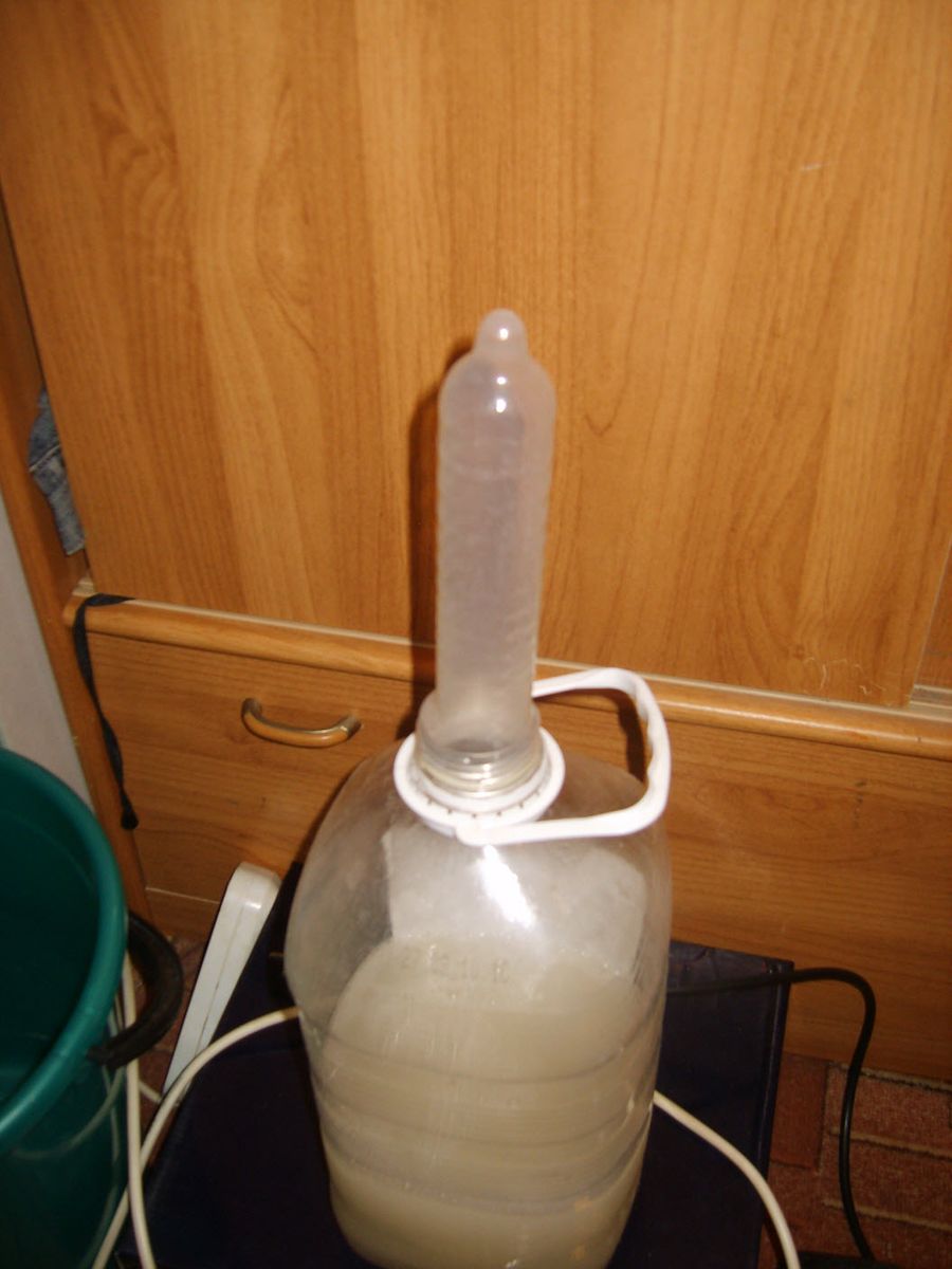 Во время брожения перчатка надувается и воздух постепенно выходит через отверстие. Когда процесс заканчивается, перчатка сдувается.