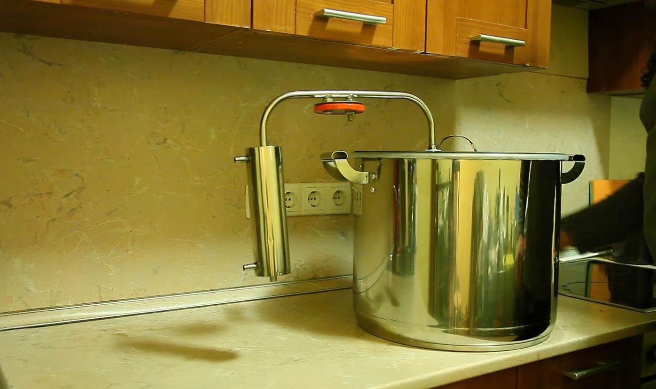 В целях экономии можно из обычной кастрюли сделать полноценный перегонный куб, который будет основой для самогонного аппарата. Сделать это несложно, достаточно потратить час своего времени и обладать базовыми навыками владения шуруповёртом. Данной инструкцией поделился автор Youtube канала Spy Gates, видео которого мы обязательно покажем в данной публикации.