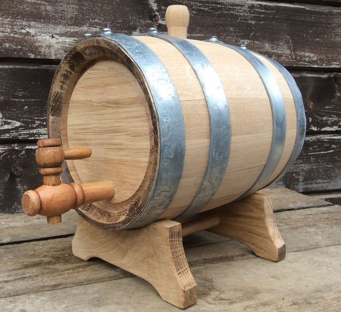 В дубовой бочке. Если денег жалко, то на дубовой коре или щепе.