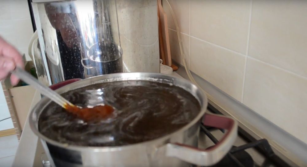 - Снимаем брагу с осадка, фильтруем через марлю или вату и переливаем в перегонный куб.