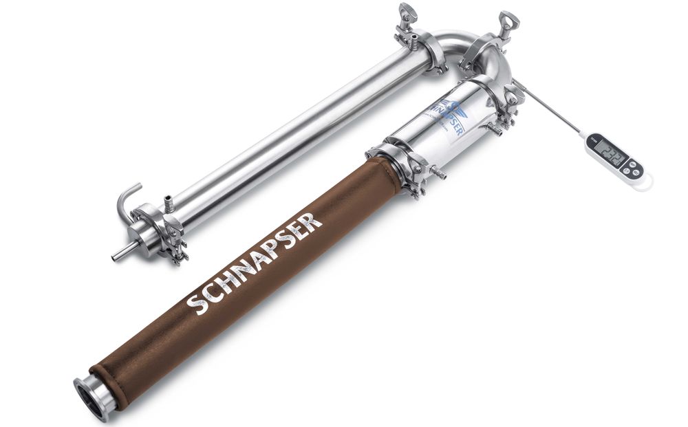 Очень далек от ректификационной колонны как по качеству самогона, так и по его крепости. Но уже можно оборудовать насадками Панченкова, что является хорошим плюсом. Дефлегматора пока ещё нет.