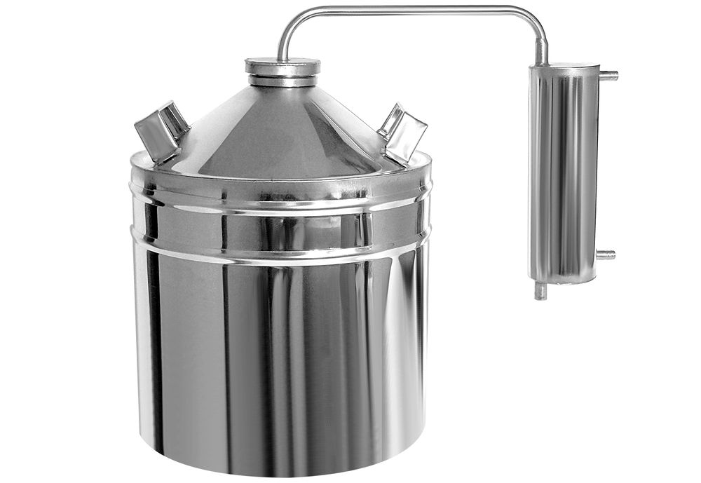 Это наиболее простой аппарат, который способен нагревать брагу в перегонном кубе и охлаждать её в змеевике (за счёт холодной воды в ведре или высоком тазу). По цене такое оборудование можно назвать бюджетным, так как цена не превышает 5–6 тысяч рублей.