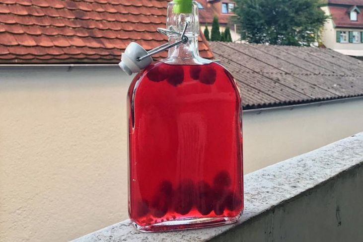 - Оставьте бутылку настаиваться простой малиновой настойкой на 2 дня.