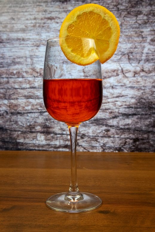- Долька свежего апельсина – классическое украшение шприца Aperol.