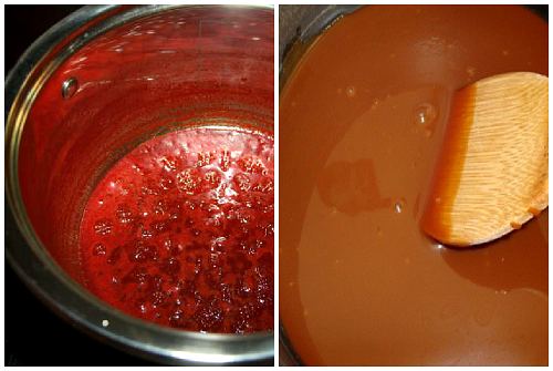 - Варить, постоянно помешивая. Масса должна загустеть и приобрести темно-красный цвет.