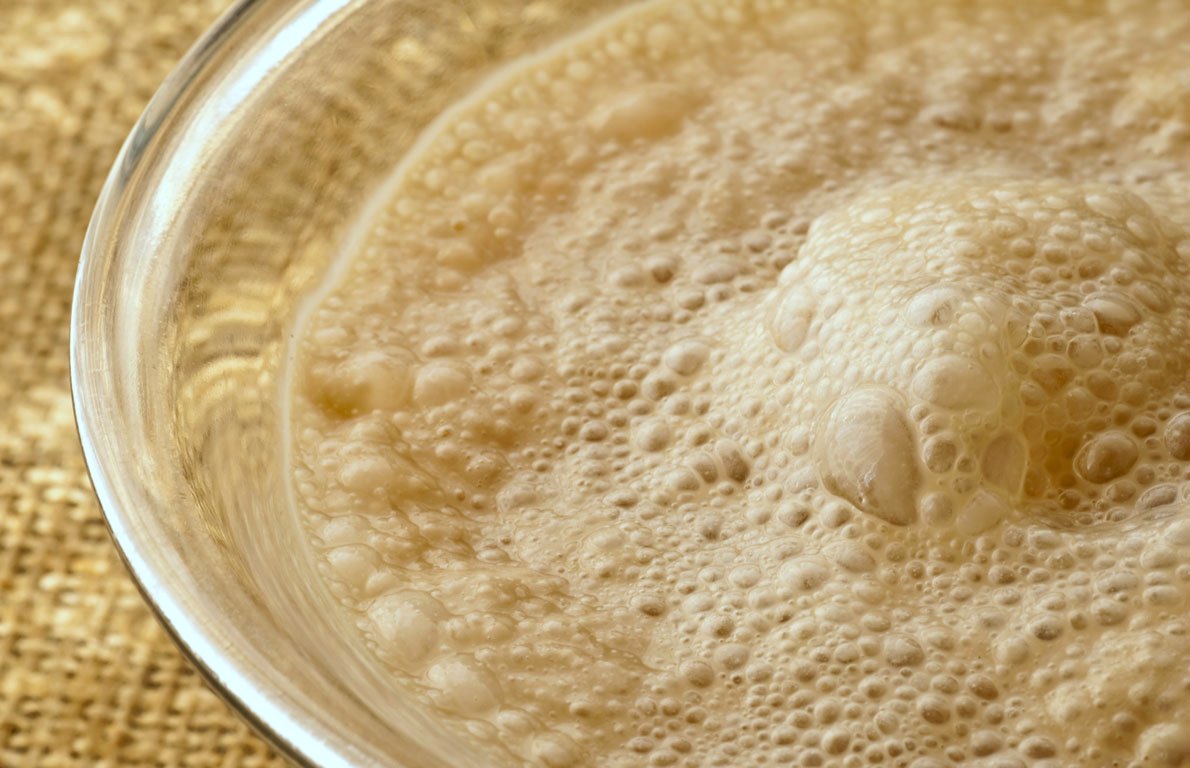 Когда дрожжи начнут работать, на поверхности появится мягкая пена, поэтому заранее убедитесь, что у вас достаточно посуды, чтобы размазать их.