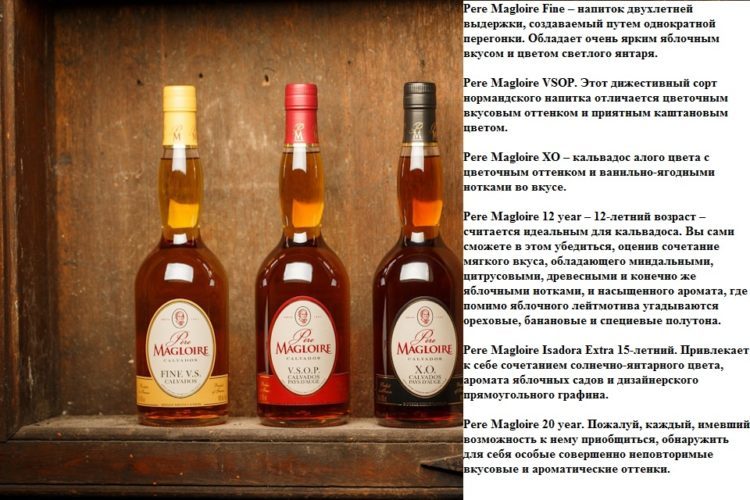 - Следует отметить, что, в отличие от известных мировых брендов, таких как коньяк, виски, арманьяк и так далее, кальвадос был мало известен за пределами Франции до середины 1940-х годов. Готовый напиток может отличаться по нескольким показателям: крепость, выдержка, состав.