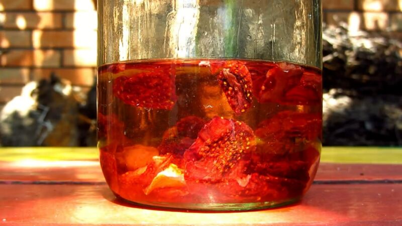 *** Выжатая ягода – залейте фруктозой или декстрозой, закройте крышкой, встряхните и снова поставьте на солнце. Через несколько дней ягода даст сок с сиропом. Достаем из холодильника банку с настоем и добавляем в сироп. Закройте крышку и поместите в холодильник.