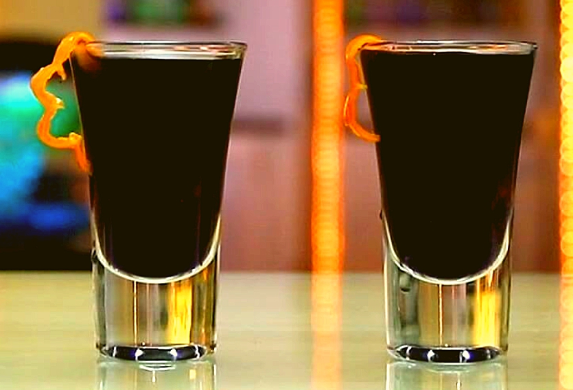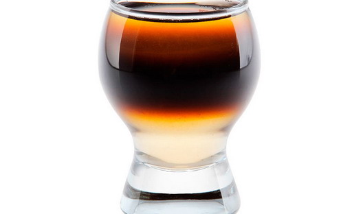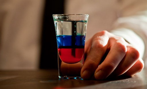 - Водку наливают тонкой струйкой по лезвию ножа на бок бокала. Слои смешивать не нужно!