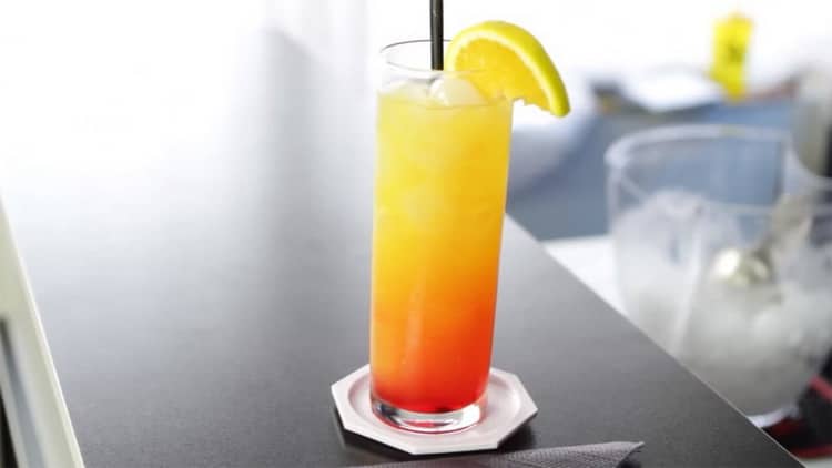 Именно так сейчас подают Текила Санрайз, не смешивая ингредиенты. Покупатель наслаждается разноцветным напитком.
