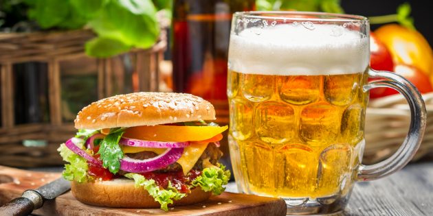 С пивом все просто: выбирайте мясо, не ошибетесь. Бургеры, стейки, куриные крылышки с острыми соусами, пицца – неприхотливая еда, которая наилучшим образом подчеркнет вкус пива.