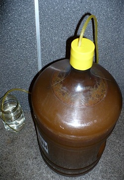 - Держите сусло в первичном ферментере еще 24 часа, затем вылейте сусло во вторичный ферментер меньшего объема, который должен быть заполнен почти до горлышка, оставив примерно 3 см сверху. Установить гидрозатвор.