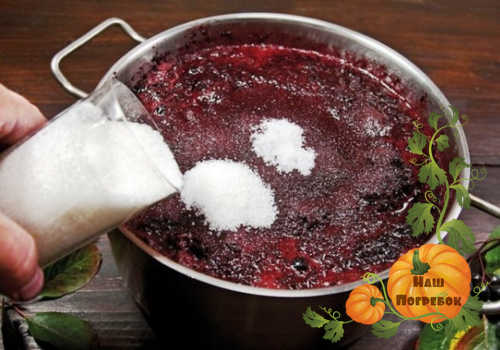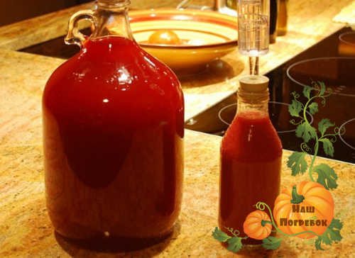 - Полученное пюре нужно процедить через сложенную в несколько слоев марлю, чистую жидкость разлить по подготовленным бутылям или банкам, всыпать оставшийся сахарный песок и снять с огня для созревания 3 месяца. Затемнить можно, разместив посуду в шкафах или накрыв ее темной плотной тканью.